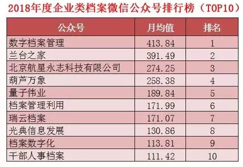 2018年全国档案界微信公众号排行榜发布