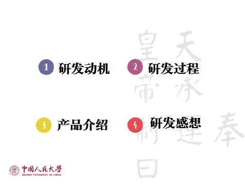 团队首先从原始文献、档案中截取专业知识点,并拟出故事情节将其串联。接着,利用美工素材构建出故事场景,且将画面设计成卷轴形式,使得每个阅读步骤如同阅览卷轴一般。本作品以吴时来先生的家族故事作为引子,并对“圣旨”的定义与功能作基本描述,而后聚焦于具有封赠功能的诰命与敕命如何被接旨者所保管……。
